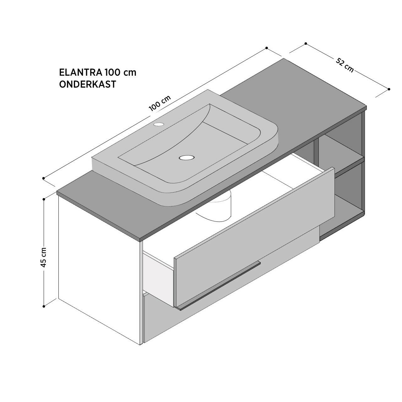 | ELANTRA 100 | ELB-1643-*-100 | A-Onderkast met Waskom | 1000/450/520 mm |