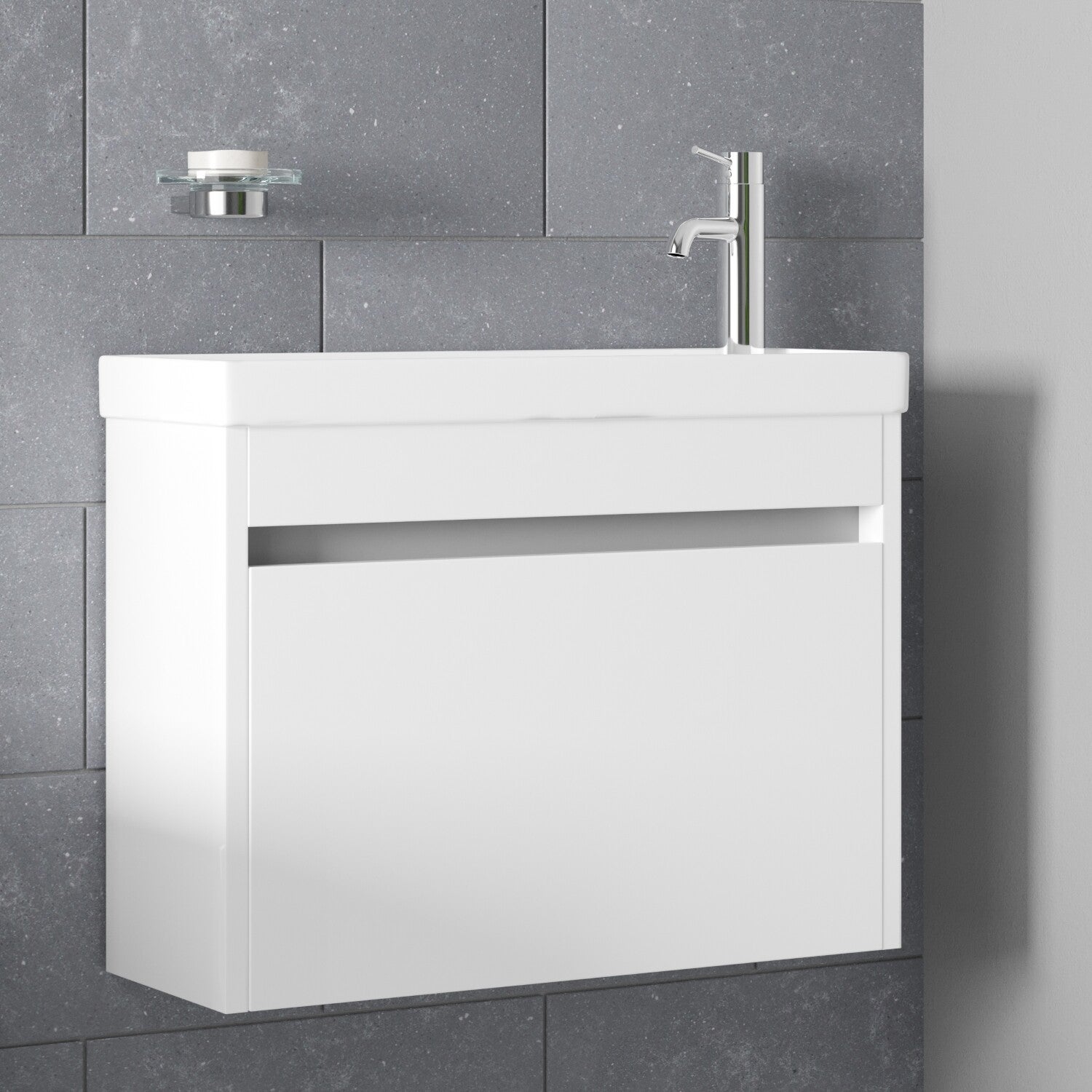 VENLO SET 60 cm Toiletmeubel (Hoogglans Wit) +Wastafel Keramiek+Spiegel