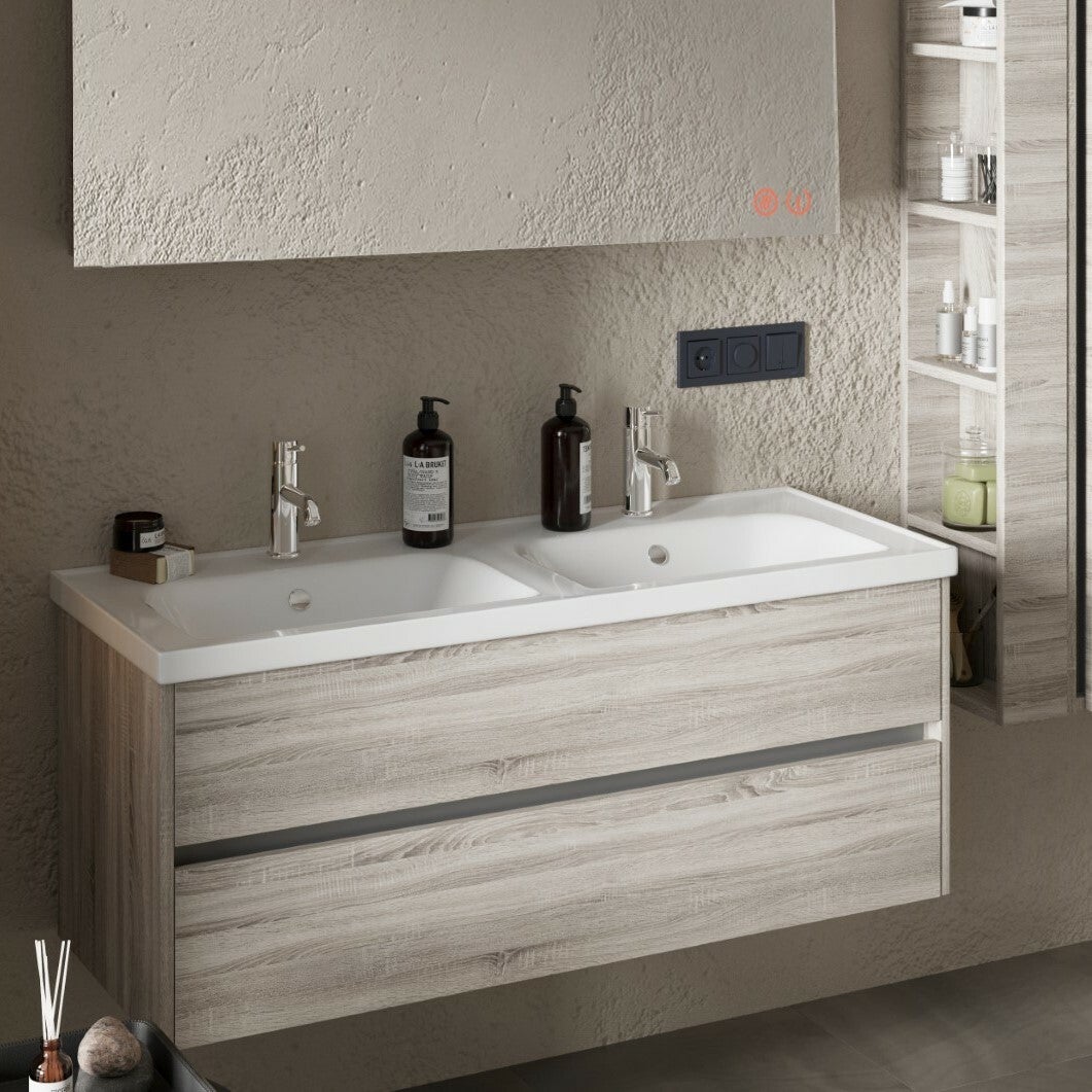 JENA 120 cm Badkamermeubel +Wastafel Keramiek/Duitse eik