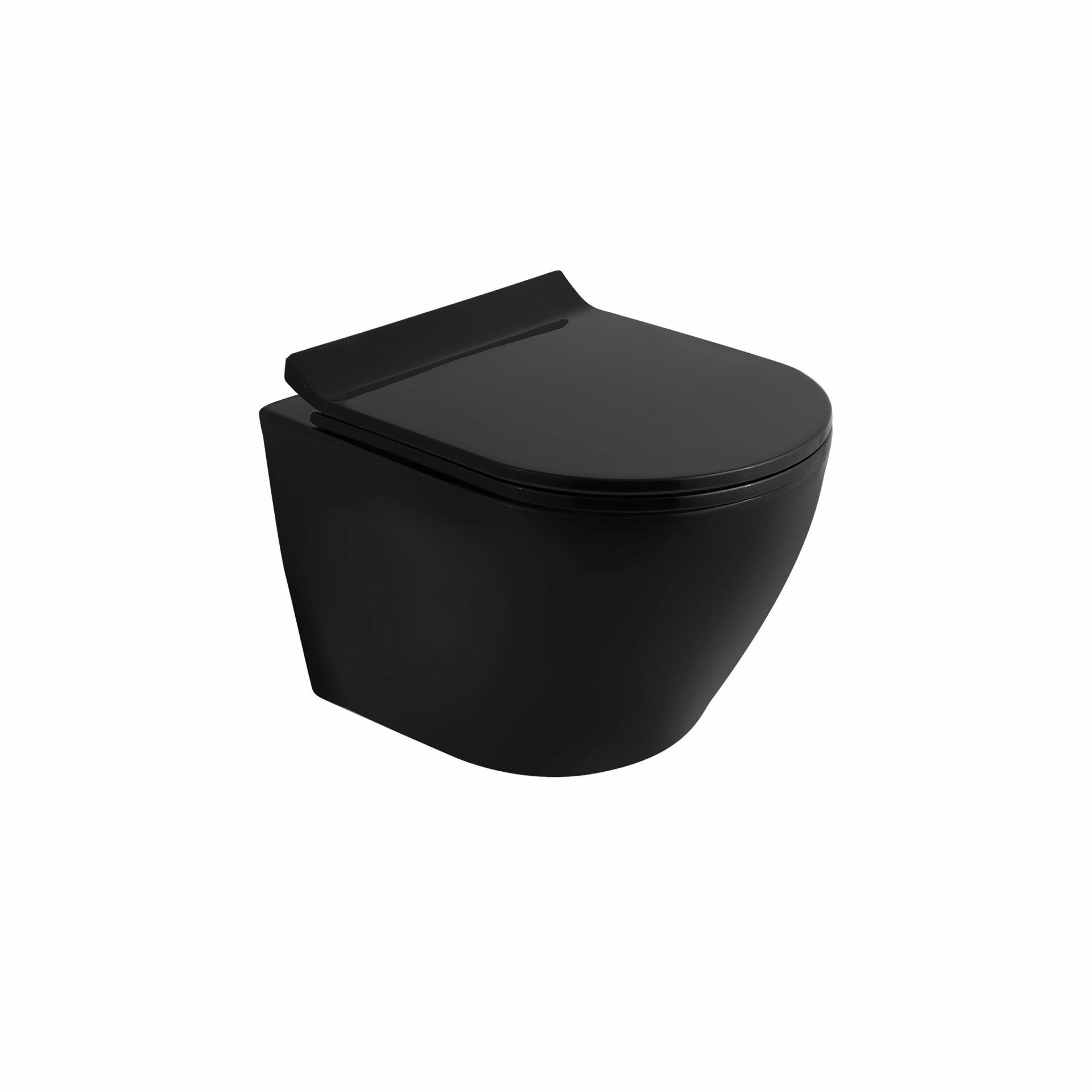 Brussel Hangend Toilet Verkort Rimfree Diepspoel Keramiek( Mat Zwart)+Gratis closetzitting