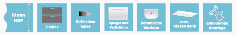 - Meubel volledig gemonteerd geleverd, wastafel afzonderlijk meegeleverd