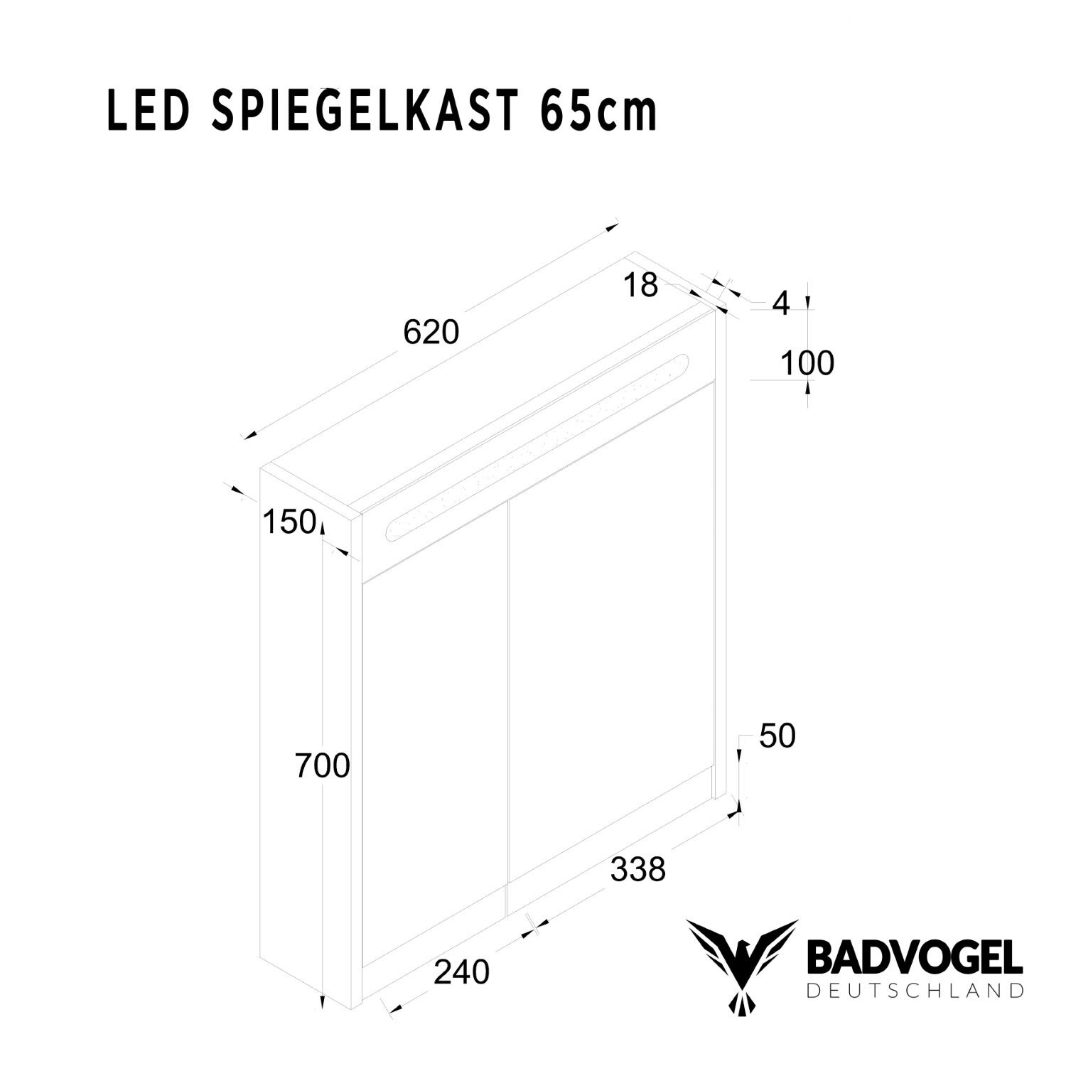 OBERHAUSEN SET 65 cm Badkamermeubel (Hoogglans Wit)+Wastafel Keramiek+Led Spiegelkast