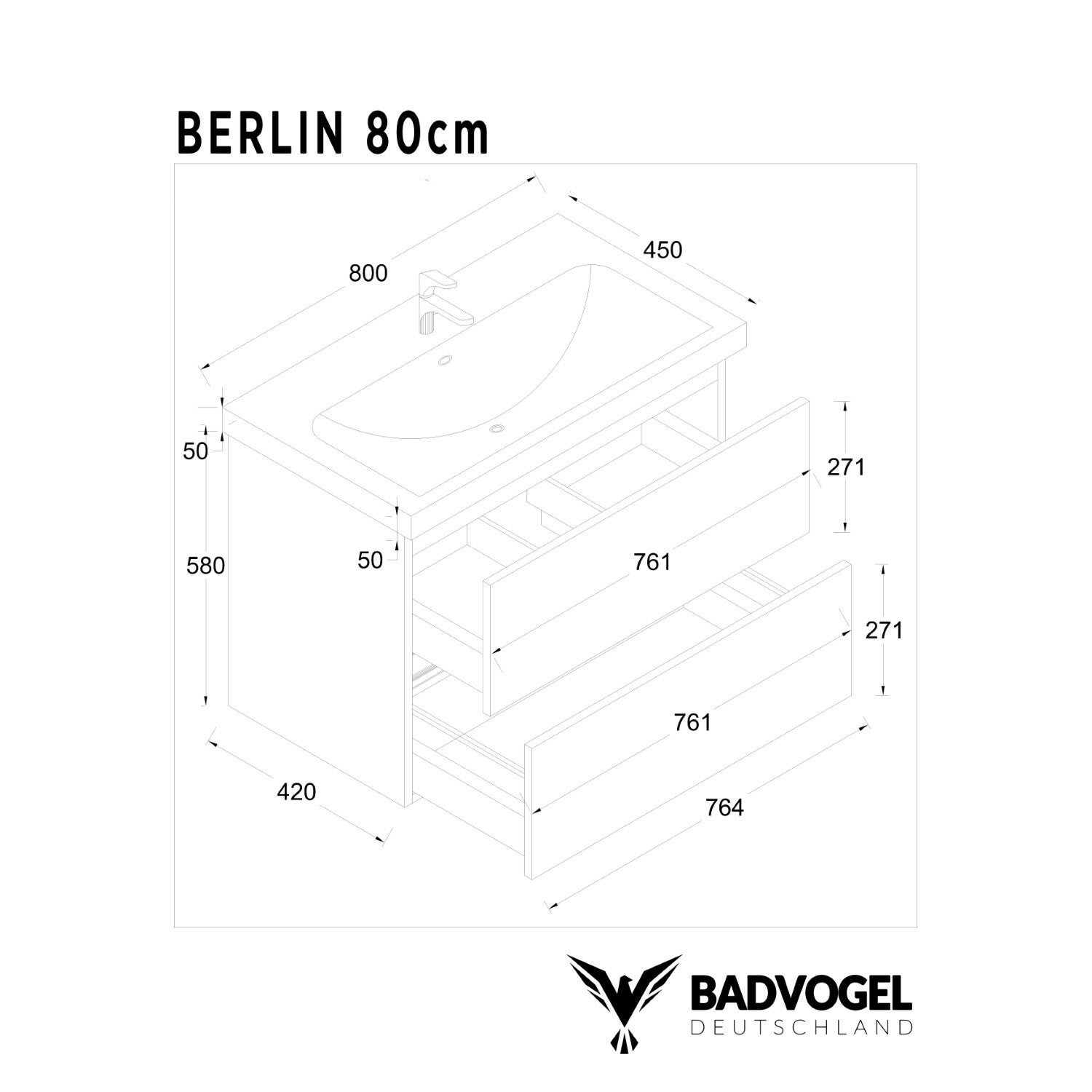 | TALL | BERLIN 80 | T-BE-80-OK-MS | A-Onderkast met Wastafel | 800/620/450 mm |