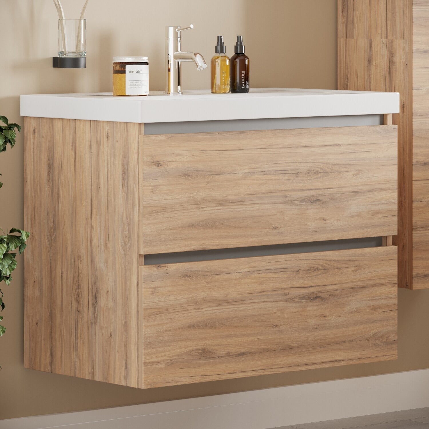 BONN SET 80 cm Badkamermeubel (Dorado) +Wastafel Keramiek+Badkamerspiegel met Led-verlichting