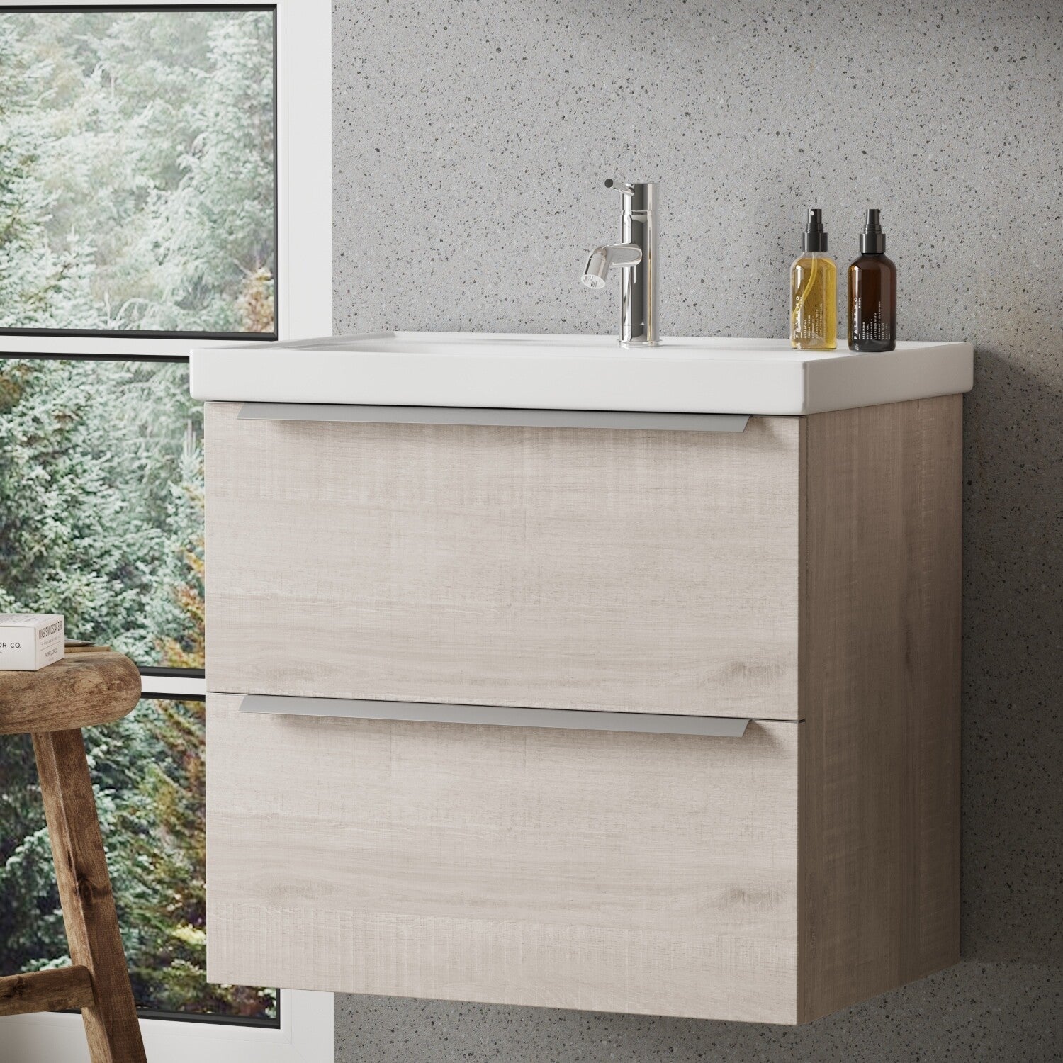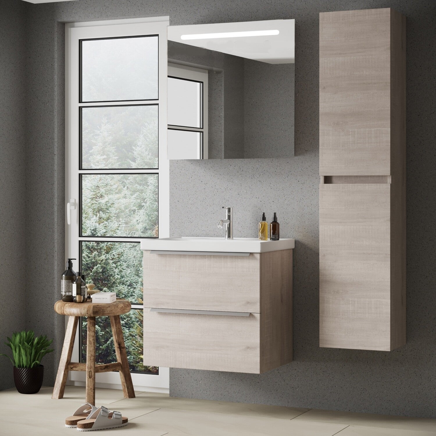 FRANKFURT SET 65 cm Badkamermeubel (Lissabon) +Wastafel Keramiek+Badkamerspiegel met Led-verlichting