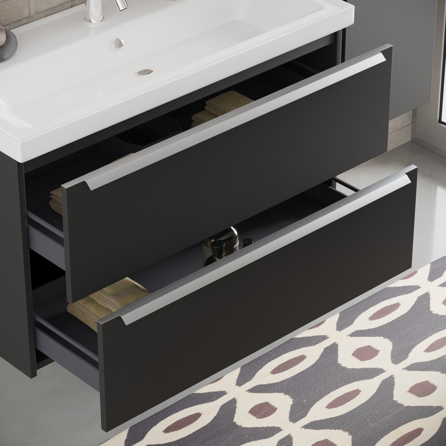 FRANKFURT SET 100 cm Badkamermeubel (Mat Zwart) +Wastafel Keramiek+Badkamerspiegel met Led-verlichting