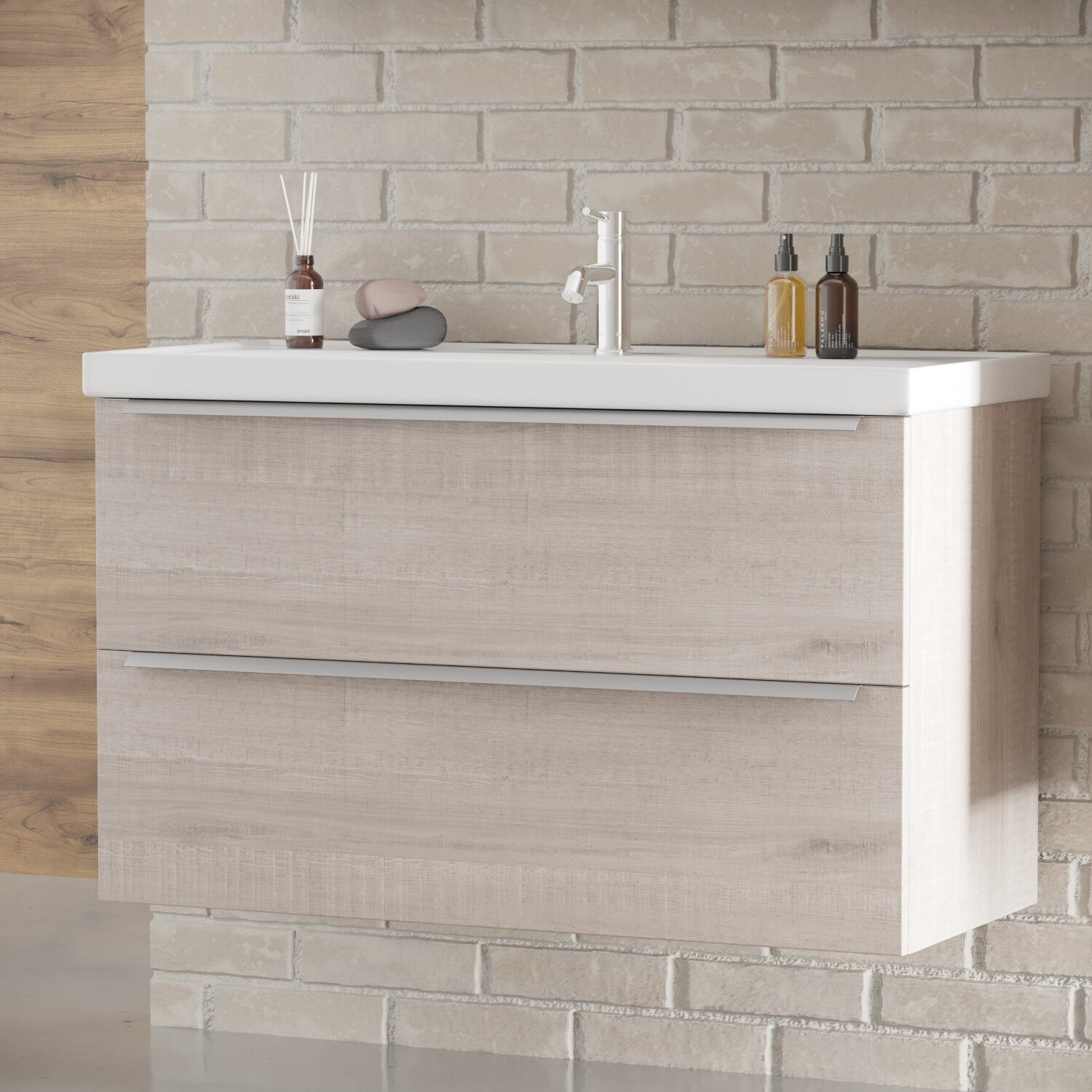FRANKFURT SET 100 cm Badkamermeubel (Lissabon) +Wastafel Keramiek+Badkamerspiegel met Led-verlichting