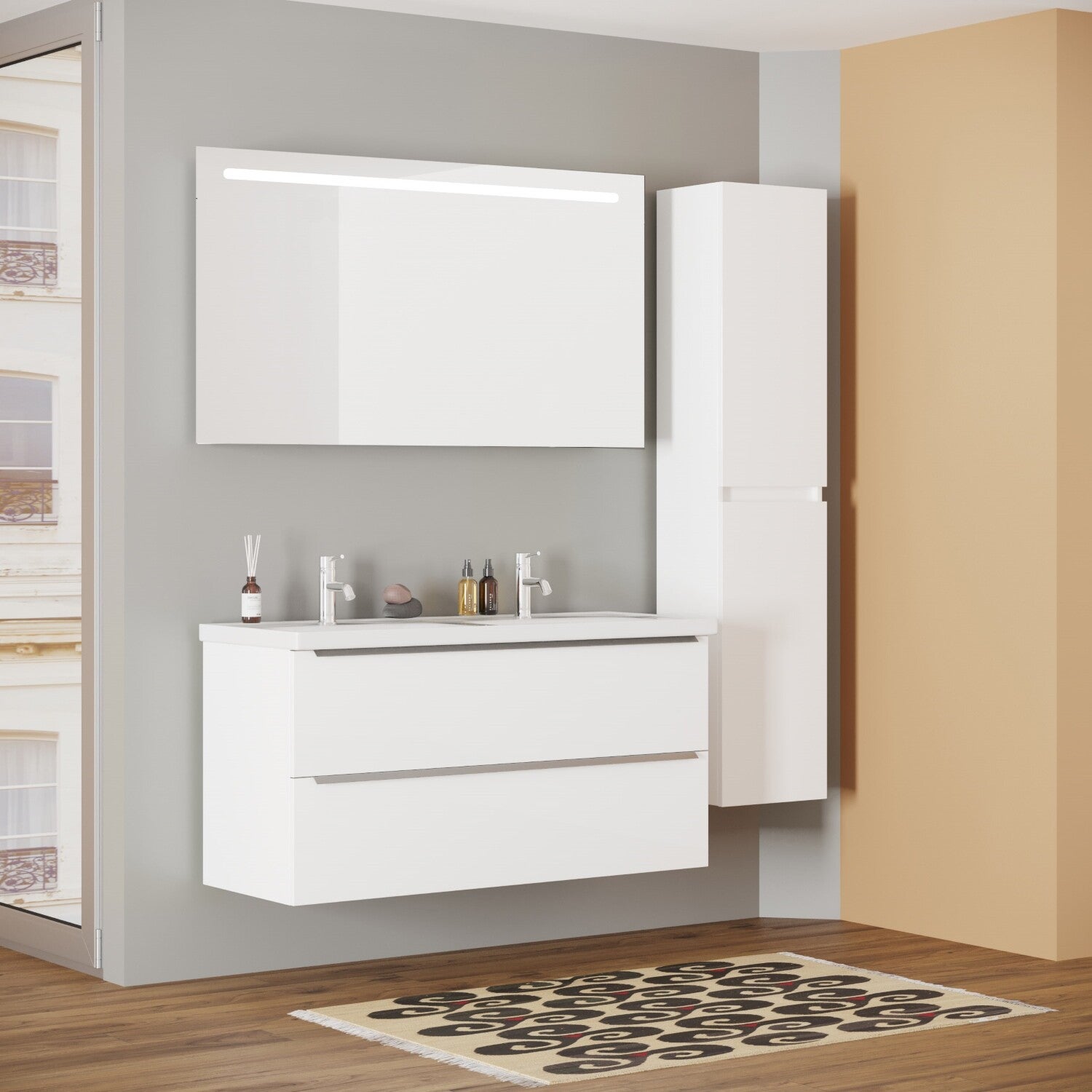 FRANKFURT SET 120 cm Badkamermeubel (Hoogglans Wit) +Wastafel Keramiek+Badkamerspiegel met Led-verlichting