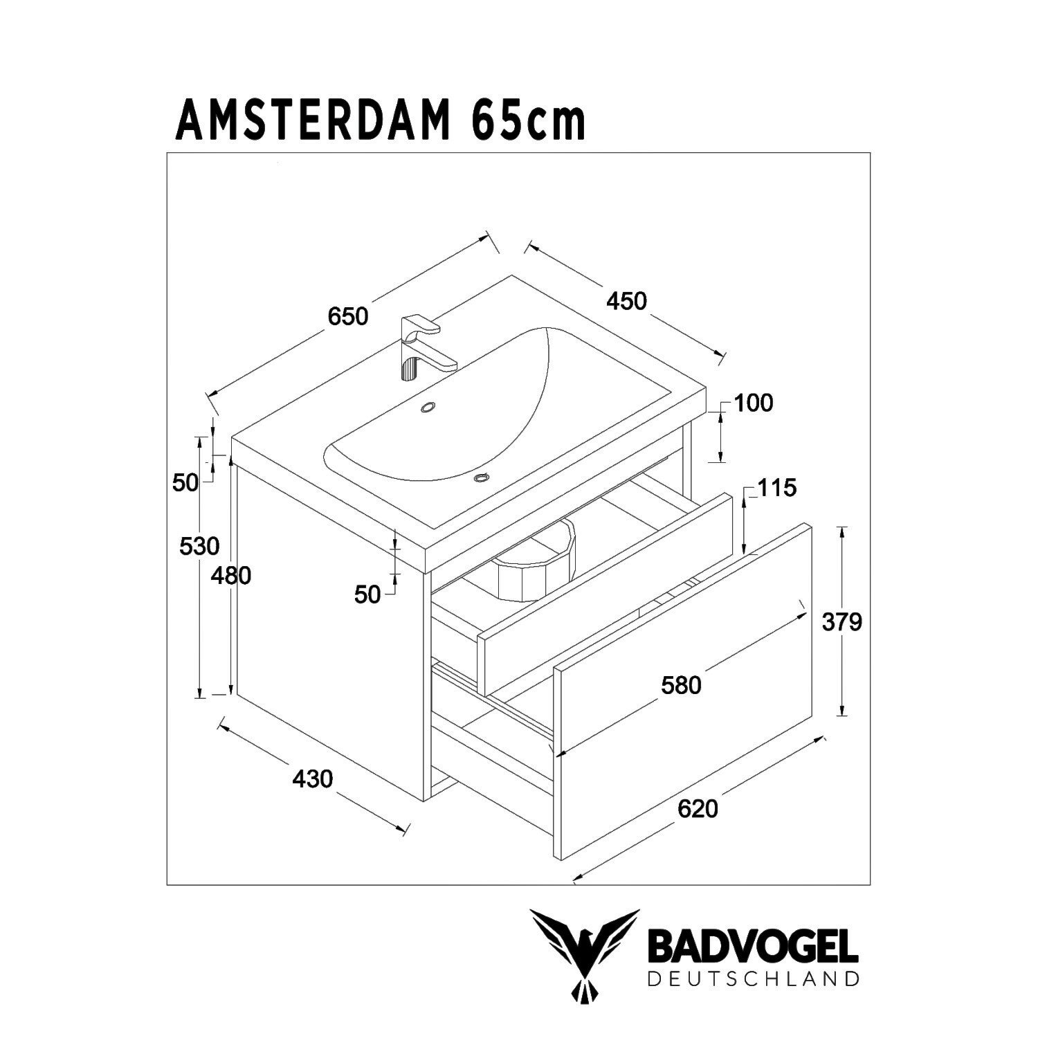| AMSTERDAM 65 | B-AM-65-OK-HW | A-Onderkast met Wastafel | 650/530/445 mm |