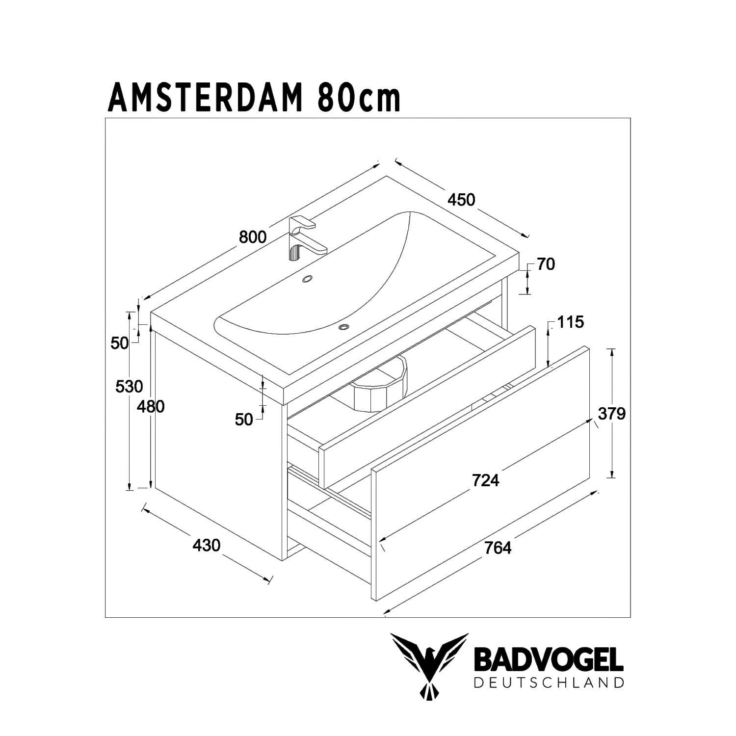 | AMSTERDAM 80 | B-AM-65-OK-MS | A-Onderkast met Wastafel | 800/530/450 mm |
