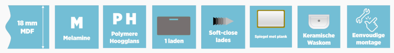 | Materiaal deuren onderkast MDF +Oppervlak is polymere hoogglans |