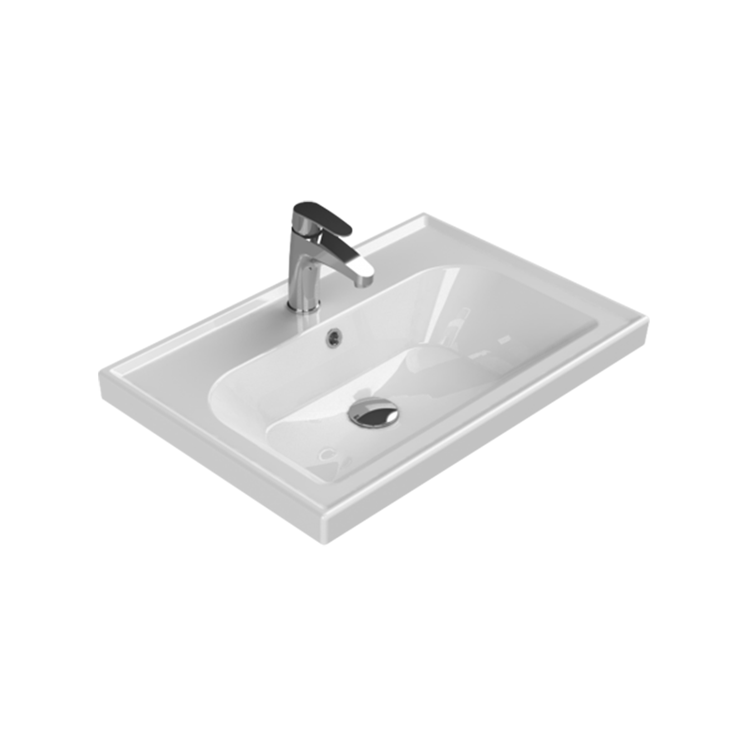 Wastafel Keramiek Frame 65cm / Hoogglans Wit