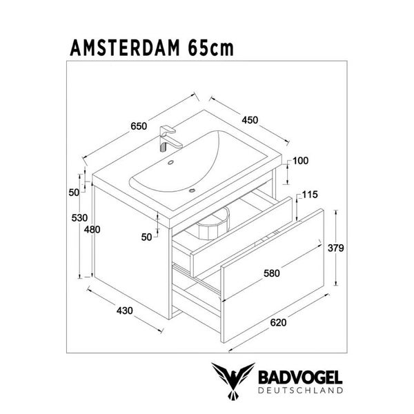 | AMSTERDAM 65 | B-AM-65-OK-HW | A-Onderkast met Wastafel | 650/530/445 mm |